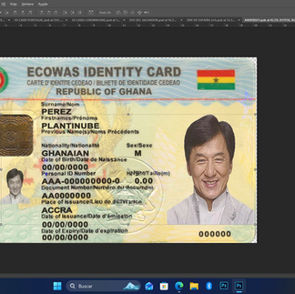 Compra la plantilla digital o formato de identificación (identity card) de Ghana falsa para editar en photoshop y photopea de manera online sin necesidad de descargar programas, es muy buena plantilla de calidad, está actualizada y la puedes comprar a un precio accesible, la plantilla incluye videos explicativos para que te guíes y puedas editarla fácilmente sin necesidad de experiencia, además incluye las fuentes de letras y una foto editable.
