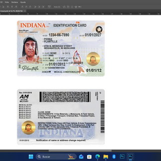 Compra la plantilla digital o formato de identificación (identification card) Indiana EE.UU. falsa para editar en photoshop y photopea de manera online sin necesidad de descargar programas, es muy buena plantilla de calidad, está actualizada y la puedes comprar a un precio accesible, la plantilla incluye videos explicativos para que te guíes y puedas editarla fácilmente sin necesidad de experiencia, además incluye las fuentes de letras y una foto editable.